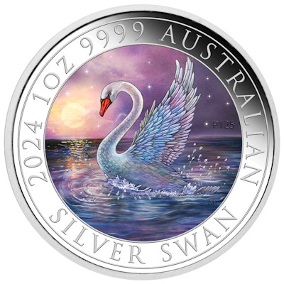 Australien - 1 AUD Schwan 2024 - 1 Oz Silber Color Box CoA | ||