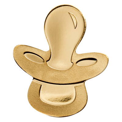 Diese Feingoldmünzausgabe wure aus reinstem 9999er Feingold in Form eines Schnullers geprägt. Die Münze besteht aus 0,5g Feingold in der hohen Reinheit von 9999 und wurde in der höchsten Prägequalität Polierte Platte produziert. |