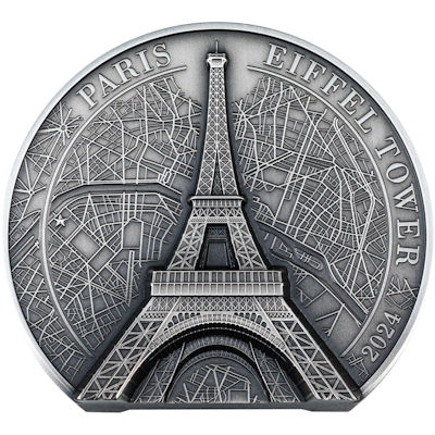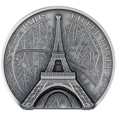 Das Wahrzeichen der Stadt der Liebe! Mit beeindruckender Erhabenheit und einem eisernen Turm erhebt es sich auf eine atemberaubende Höhe von 330 Metern über den Dächern von Paris. Das kreative Genie hinter diesem monumentalen Werk war der angesehene Brückenbauer Gustave Eiffel, dessen umfassende Kenntnisse über das Verhalten von Metallstützen und -bögen in diesem beeindruckenden Wunderwerk gipfelten. Umgeben von funkelnden Lichtern bei Nacht und majestätischer Pracht bei Tag bietet der Eiffelturm einen atemberaubenden Panoramablick auf die bezaubernde, berühmte Stadt Paris. Diese freistehende Münze besticht durch den dezenten Stadtplan von Paris im Hintergrund, ein außergewöhnlich hohes Relief auf beiden Seiten und das hervorragend detaillierte Stahlgerüst des Turms.