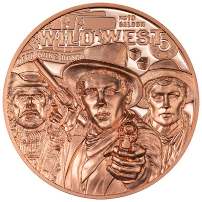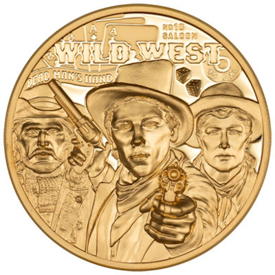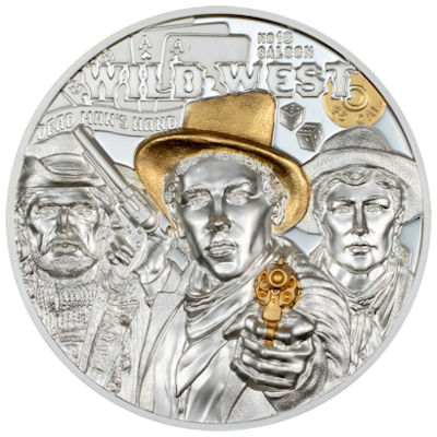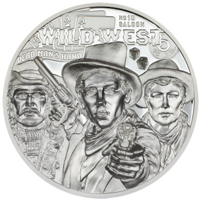 Darüber hinaus ist die Münze mit einer Vielzahl von Besonderheiten ausgestattet. Auf der Rückseite sind neben den drei Helden die Hand des toten Mannes, der Name des Saloons und die Kugel der Waffe abgebildet, die Wild Bill ins Jenseits schickte. Je nach Spezifikation variiert die Anzahl der Punkte auf den Würfeln, während auf der Vorderseite das Wappen geneigt und nach außen gebogen ist, integriert in den Stern des Sheriffs.