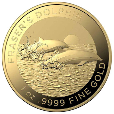 Die Ausgabe aus 2021 zeigt den Fraser`s Dolphin. Es ist die dritte Ausgabe der beliebten Delphin Serie der Royal Australian Mint! Die 1 Oz Feingoldausgabe in reinstem 9999er Gold ist auf nur 250 Stück weltweit streng limitiert. |