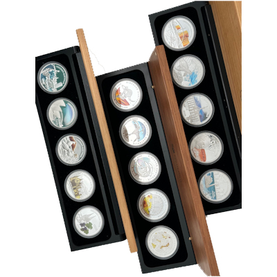 Eine der schönsten australischen Sammlerausgaben erschien in den Jahren von 2006 bis 2013 und umfasste insgesamt 40 Einzelmünzen zu je 1 Oz Feinsilber in höchster Prägequalität Polierte Platte mit hochwertig colorierten Motiven. Hier erhalten Sie das komplette Set mit 8 Boxen zu je 5 Münzen. Also 40 ein Unzen Silbermünzen insgesamt. Bei 38 Münzen ist zudem noch das Echtheitszertifikat von der The PerthMint Australia vorhanden. |
