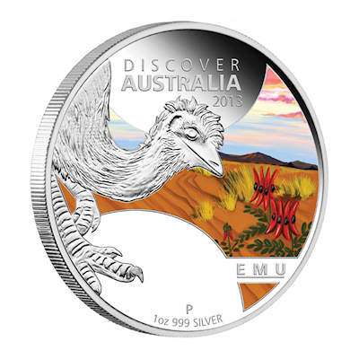 Australien - 1 AUD Discover Australia 2013 Emu - 1 Oz Silber | ||