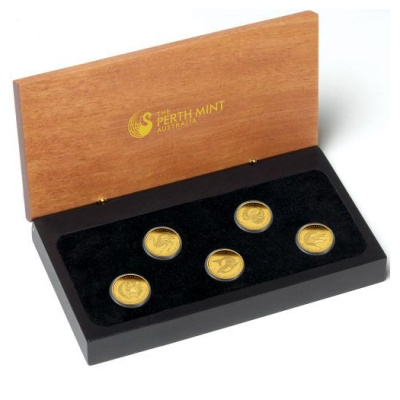 Technische Daten: Ausgabeland: Australien Prägeanstalt: The PerthMint Australia Ausgabejahr: 2011 Nennwert: 5 * 5 AUD Material: Gold Gewicht: 6,22060g Durchmesser: 14,60 mm Dicke: 1,40 mm Auflage: 25.000 Stück Prägequalität: Polierte Platte Verpackung: Gekapselt im Original-Etui mit Umverpackung und nummeriertem Echtheitszertifikat |