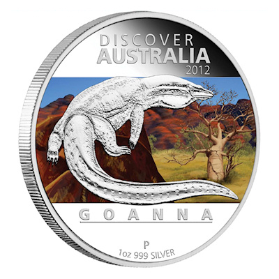Australien - 1 AUD Discover Australia 2012 Goanna - 1 Oz Silber | ||