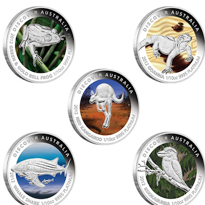 Australien - Discover Australia Set 2012 - 5 * 1/10 Oz Platin | ||