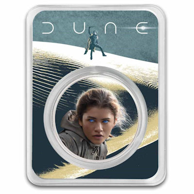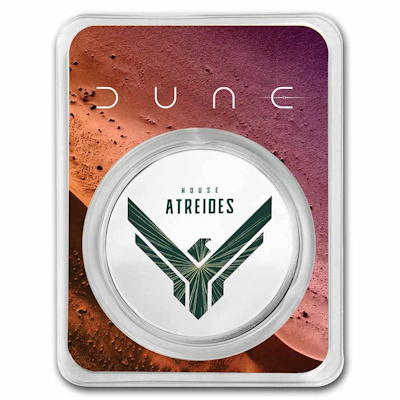 DUNE® ist ein mit Spannung erwartetes großes Filmset, das im Oktober 2021 veröffentlicht wird. APMEX hat sich mit Legendary Entertainment zusammengetan, um die bekannten Charaktere, Konzepte und Landschaften mit Angeboten wie einem Spice-Set, geschlagenen Runden und kolorierten Runden zum Leben zu erwecken in TEP-Verpackung.