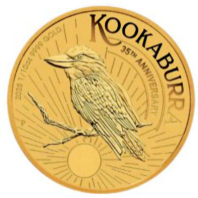 Es handelt sich hier um die 2025er Ausgabe des Australien Kookaburra in 1/10 Oz Feingold mit einer Maximalauflage von 15.000 Stück weltweit. |
