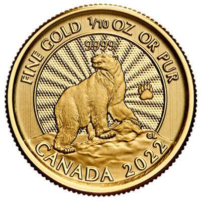 | Kanada - 5 CAD Majestätischer Polarbär 2022 - 1/10 Oz Gold | ||
