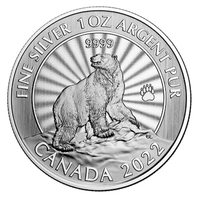 | Kanada - 5 CAD Majestätischer Polarbär 2022 - 1 Oz Silber | ||