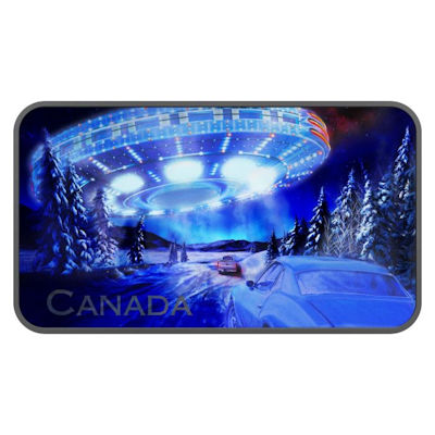 Es handelt sich um die 5. Ausgabe der Ufo Sichtungen. In der Nacht des 11. Dezember 1996 berichteten mindestens 31 Menschen in vier verschiedenen Gebieten im Yukon, ein UFO am Himmel gesehen zu haben. Die von den Zeugen beschriebenen hellen Lichter wurden auf der Rückseite dieser rechteckigen Münze nachgebildet, wo ein vollständiges Bild des riesigen UFOs sichtbar wird, wenn die Schwarzlicht Farbtechnologie mit Hilfe der mitgelieferten Schwarzlichtlampe aktiviert wird. Diese wunderschön gestaltete Münze wird in der höchsten Prägequalität Polierte Platte coloriert ausgeliefert. |