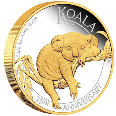 Australien - 3 AUD 15 Jahre Koala 2022 - 3 Oz Silber Gilded | ||