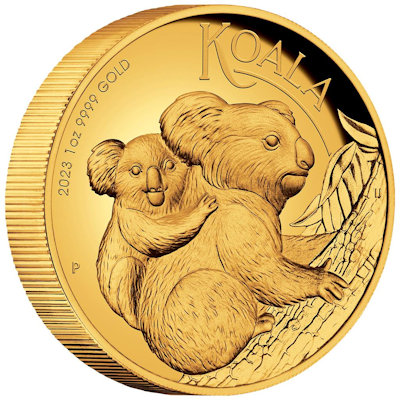 Es handelt sich hier um die 2023er Ausgabe des Australien Koala in 1/10 Oz Feingold. |