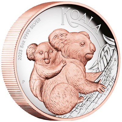 Australien - 8 AUD Koala 2023 - 5 Oz Silber HighRelief Gilded | ||