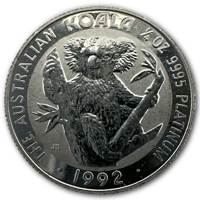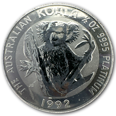 Die 1992er Ausgabe des 1/2 Oz Platin Koalas von der PerthMint Australia. |