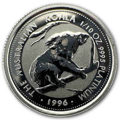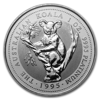 Die 1995er Ausgabe des 1 Oz Platin Koalas von der PerthMint Australia. |