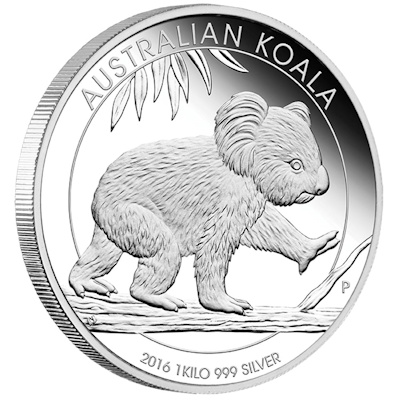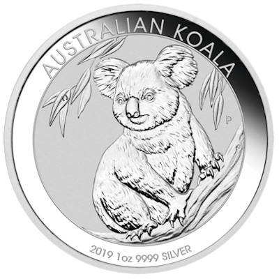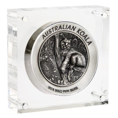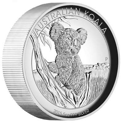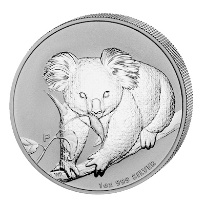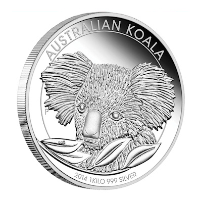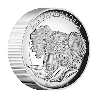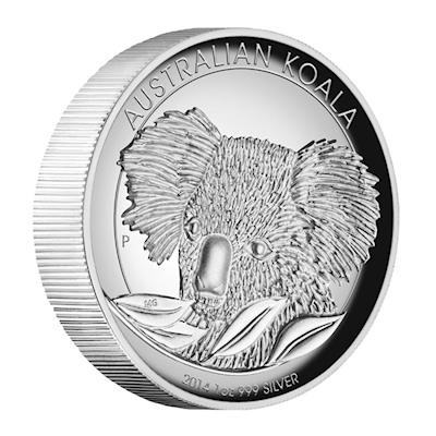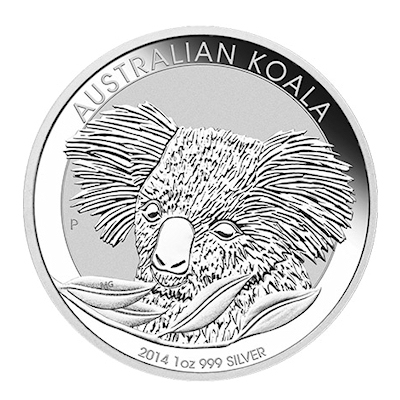 Die 2014er Ausgabe der Australischen Anlagemünze Koala in 999/1000 Feinsilber geprägt und einzeln gekapselt. |