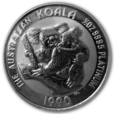 Die 1990er Ausgabe des 1/2 Oz Platin Koalas von der PerthMint Australia. |