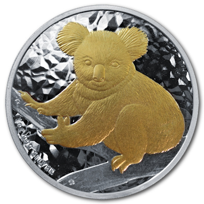 Die 2009er Ausgabe des Silber Koala hochwertig mit 24 Karat Gold vergoldet. Die Münze ist gekapselt. |