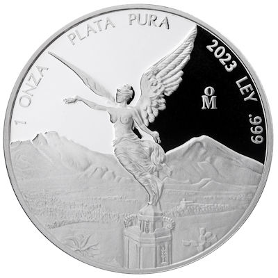 Der Libertad (Freiheit) ist eine der weltweit bekanntesten und in Silber auch die älteste moderne Anlagemünze und wird in Gold (seit 1981)und in Silber (seit 1982) in vielen verschiedenen Größen sowie in Stempelglanz als auch in Polierter Platte (Proof) geprägt. Verkauft wird diese wunderschöne Anlagemünze von der Banco de Mexico, geprägt von der staatlichen Prägeanstalt Casa de Moneda de Mexico. Die Münze trägt, wie der Krügerrand auch, keinen Nennwert. Dieser wird immer aktuell durch den Materialwert festgelegt. Somit ist diese Münze auch ohne Nennwert gesetzliches Zahlungsmittel in Mexiko. Das Motiv der Münze wurde im Jahr 1996 überarbeitet, dabei hat sich auch der Durchmesser geändert. Zu sehen ist jedoch nach wie vor die Siegesgöttin vor den beiden Vulkanen Iztaccíhuatl und Popocatépetl. Das Motiv entstand inspiriert durch das Denkmal El Ángel de la Independencia in Mexiko-Stadt. |
