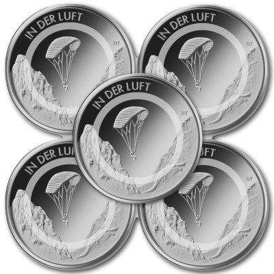 Es handelt sich hier um die 1. Ausgabe mit dem Titel In der Luft aus der 3-teiligen Serie Luft bewegt. Sie erhalten einen Komplettsatz mit allen 5 Prägebuchstaben in der höchsten Prägequalität Spiegelglanz in Originalverpackung wie die Münzen offiziell verausgabt wurden. Das Bildmaterial ist Copyright (c) bei BADV |