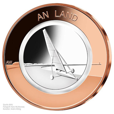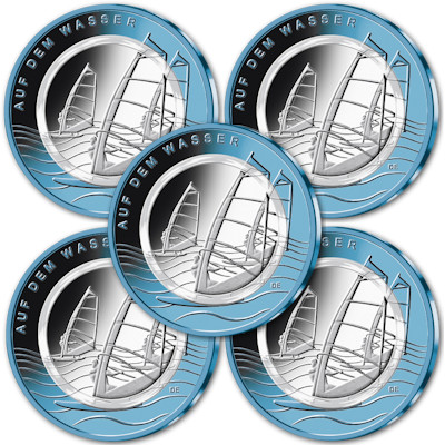 Es handelt sich hier um die 3. Ausgabe mit dem Titel Auf dem Wasser aus der 3-teiligen Serie Luft bewegt. Sie erhalten einen Komplettsatz mit allen 5 Prägebuchstaben in der höchsten Prägequalität Spiegelglanz in Originalverpackung wie die Münzen offiziell verausgabt wurden. Das Bildmaterial ist Copyright (c) bei BADV |