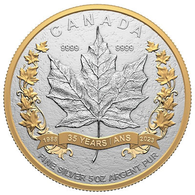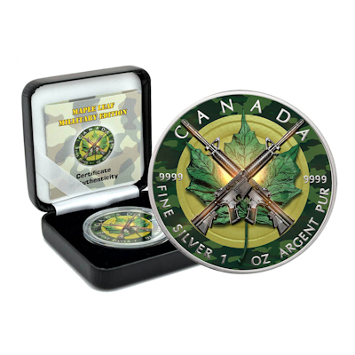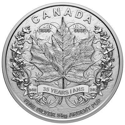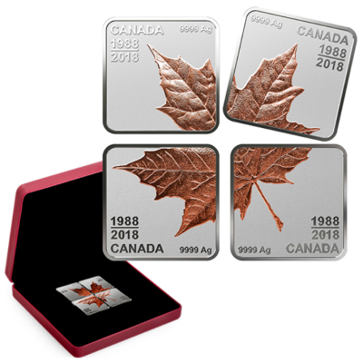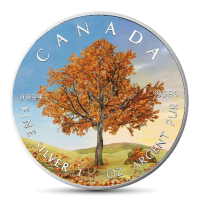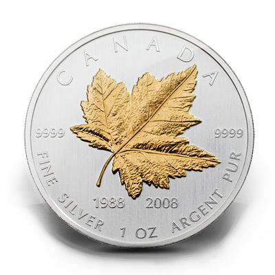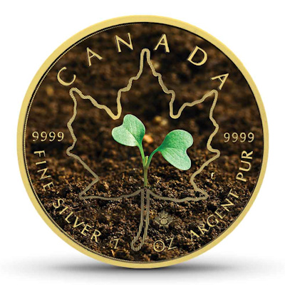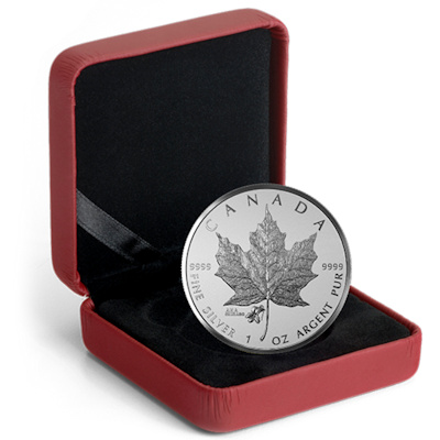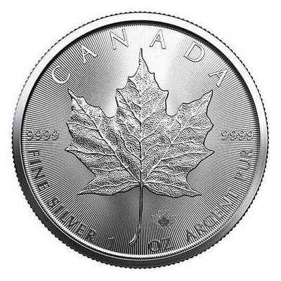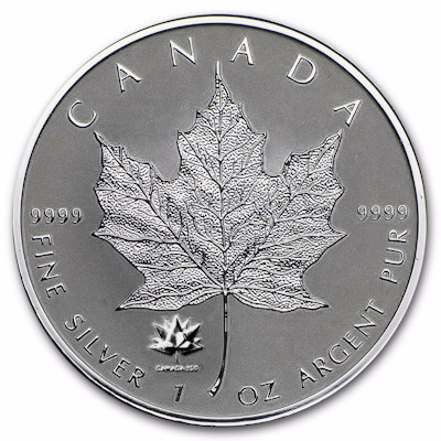 Seit 1988 wird von der Royal Canadian Mint aus Kanada die Silberanlagemünze Maple Leaf in einer Reinheit von 999,9/1000 ausgegeben. Auf der Motivseite prägt das Ahornblatt das Erscheinungsbild, welches auch als Namensgeber für die Münzserie herhalten mußte. Das Ahornblatt (oder Maple Leaf) ist ein Wahrzeichen Kanadas und auch auf der Nationalflagge zu sehen. Neben der normalen Anlagemünze verausgabte die Royal Canadian Mint über die Jahre hinweg auch viele Sonderprägungen und sogenannte Privy Münzen, die bei Sammlern sehr beliebt sind und deutlich teurer gehandelt werden, als die normalen Anlagemünzen. | ||