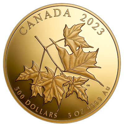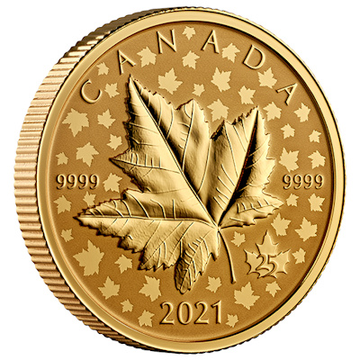 Kanada - 100 CAD Glänzender Maple Leaf (Gleaming Maple Leaves) 2025 - 1/4 Oz Gold | ||