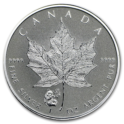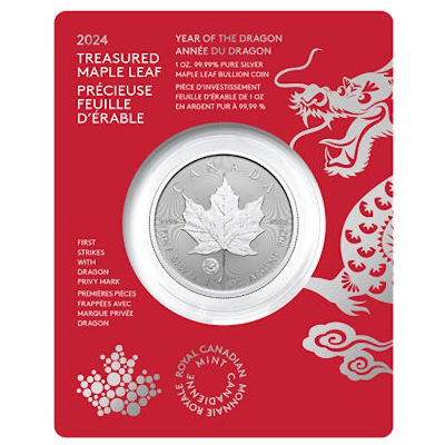 Es handelt sich hier um die 2000er Maple Leaf in 1 Oz Silber mit dem Privy-Mark Dragon zum Jahr des Drachen. Die Münze kommt in der Prägequalität Stempelglanz und ist auf nur 25.000 Stück weltweit streng limitiert. |