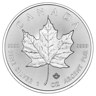 Eine der weltweit beliebtesten Silber Anlagemünzen ist der Maple Leaf. Diese 1 Oz Feinsilbermünze ist aus dem Jahr 1989. |