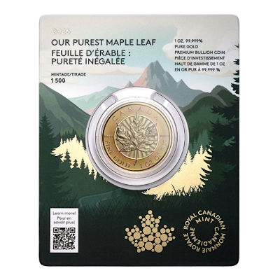 Der Purest Maple Leaf wird individuell aus 99,999 % reinem (fünf Neunen) Gold gefertigt und hält sein Versprechen einer höheren Goldreinheit. Die Auflage ist weltweit auf nur 1.500 Stück streng limitiert. |