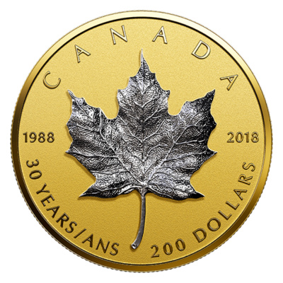 Kanada - 86 CAD Maple Leaf 20 Jahre Jubiläumssatz 1999 - 1,9 Oz Gold Color | ||