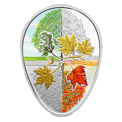 Selbst bei der leichtesten Brise schimmern und wiegen sich die Blätter eines Silberahornbaums im Sonnenlicht, während ihre silberne Unterseite aufblitzt. Dieser Effekt wird in diesem Porträt aus Feinsilber eingefangen, in dem die geäderten Blätter des Acer saccharinum mit einer facettenreichen Gravur wiedergegeben wurden, was zu einer schillernden neuen Ansicht eines berühmten kanadischen Wappens führt. Innerhalb der vertrauten Blattsilhouette steigen und fallen die sorgfältig geformten und präzise abgewinkelten Linien auf und ab, reflektieren und streuen das Licht in verschiedene Richtungen und erzeugen so ein glänzendes Kunstwerk, eines, das die Schönheit des wertvollsten Symbols Kanadas widerspiegelt. Die Auflage ist weltweit auf 25.000 Stück limitiert. Die Auslieferung erfolgt gekapselt im Original-Etui und Echtheitszertifikat. |