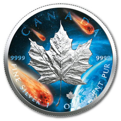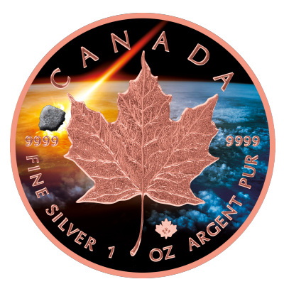 Zum Millenium 1999-2000 verausgabte die Royal Canadian Mint eine Sonderausgabe der beliebten Maple Leaf Silberanlagemünze mit einem Feuerwerk Privy. |