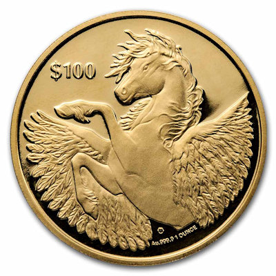 Seit 2017 verausgabt die Popjoy Mint die Pegasus Anlagemünze in 1 Oz Feinsilber und streng limitiert als Kleinauflage. Das Ausgabeland ist dabei immer die Britischen Jungferninseln (British Virgin Island). Neben der 1 Oz Feinsilbermünze wurden über die Jahre auch 2 Oz Silbermünzen, 5 Oz Silbermünzen sowie 1 Oz Feingoldmünzen mit sehr geringer Auflage verausgabt.