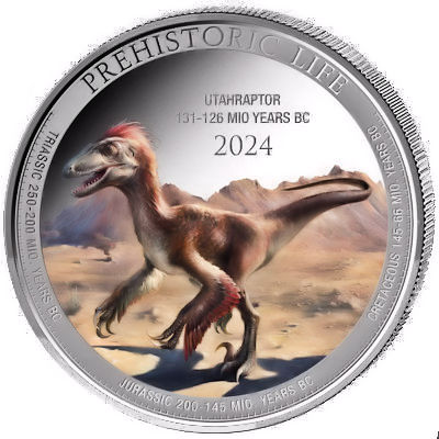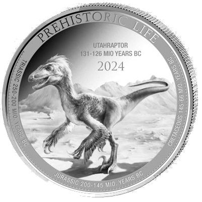 Dies ist die dritte Ausgabe der zweiten Serie Prähistorisches Leben und zeigt den Utahraptor. Die Münze ist aus reinstem 9999er Feinsilber in der Prägequalität Stempelglanz geprägt und auf jeweils nur 10.000 Stück weltweit streng limitiert. Die Auslieferung erfolgt einzeln gekapselt. |