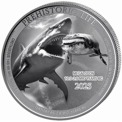 Dies ist die fünfte Ausgabe der zweiten Serie Prähistorisches Leben und zeigt den Megalodon. Die Münze ist aus reinstem 9999er Feinsilber in der Prägequalität Stempelglanz geprägt und auf nur 10.000 Stück weltweit streng limitiert. Die Auslieferung erfolgt einzeln gekapselt. |