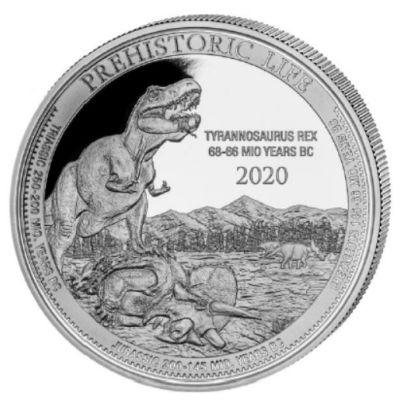 Kongo - 20 Francs Prähistorisches Leben (1.) T-Rex - 1 Oz Silber | ||