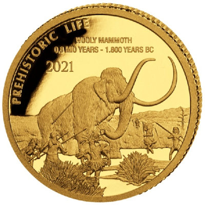 Mit der Ausgabe Wollmammut wird die Serie Prähistorisches Leben fortgesetzt. Die Münze ist aus reinstem 9999er Feingold in der höchsten Prägequalität Polierte Platte geprägt und auf jeweils nur 2.000 Stück weltweit streng limitiert. Die Auslieferung erfolgt einzeln gekapselt. |