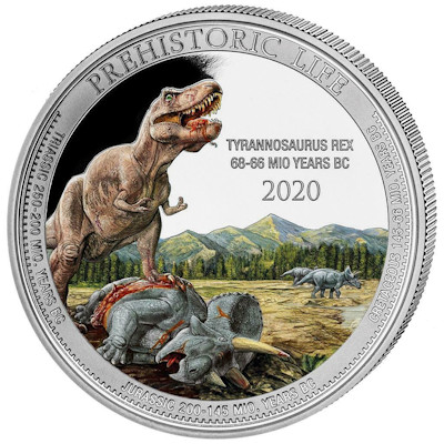 Mit der Ausgabe T-Rex (Tyrannosaurus Rex) startet die neue Serie zum Thema Prähistorisches Leben. Die Münze ist aus reinstem 9999er Feinsilber in der höchsten Prägequalität Stempelglanz geprägt und auf jeweils nur 10.000 Stück weltweit streng limitiert. Die Auslieferung erfolgt einzeln gekapselt. |