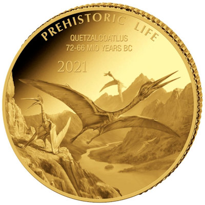 Mit der Ausgabe Quetzalcoatlus wird die Serie Prähistorisches Leben fortgesetzt. Die Münze ist aus reinstem 9999er Feingold in der höchsten Prägequalität Polierte Platte geprägt und auf jeweils nur 2.000 Stück weltweit streng limitiert. Die Auslieferung erfolgt einzeln gekapselt. |
