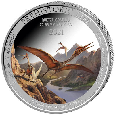 Mit der 6. Ausgabe Quetzalcoatlus wird die Serie Prähistorisches Leben fortgesetzt. Die Münze ist aus reinstem 9999er Feinsilber in der höchsten Prägequalität Stempelglanz geprägt, aufwendig coloriert und auf nur 2.000 Stück weltweit streng limitiert. Die Auslieferung erfolgt einzeln gekapselt. Die Ausgabe ist beim Hersteller bereits komplett ausverkauft und musste zugeteilt werden. |