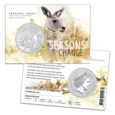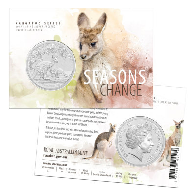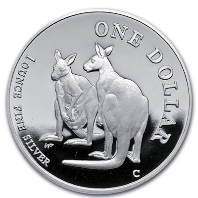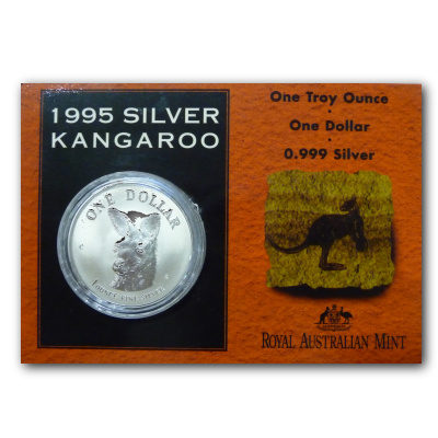 Von der Royal Australian Mint (RAM) wird seit 1993 das Silber Känguru verausgabt. Die Münzen haben ein Feingewicht von 1 Oz Silber bei einer Reinheit von 999/1000 und wechseln jährlich das Motiv. Der Nennwert beträgt 1 AUD, der Metallwert übersteigt denn Nennwert um ein vielfaches, wie bei Anlagemünzen üblich. Die Münze wird nur in geringen Stückzahlen produziert, so dass die Münzen deutlich über dem reinen Materialwert verkauft werden. Seit 1998 wird die Münze auch in polierter Platte verausgabt. Die Stempelglanz Version gibt es entweder im Blister oder nur gekapselt. Seit 2007 verausgabt die RAM auch eine Variante in Kupfer/Nickel. Seit 2012 auch eine Version in 1/10 Oz Feingold. | |