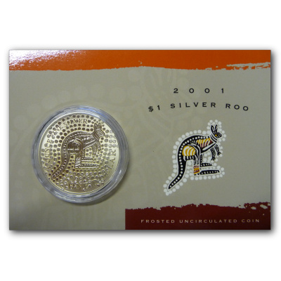 One Dollar Silver Kangaroo - Ausgabe 2001, verpackt im Original-Blister der Royal Australian Mint. |