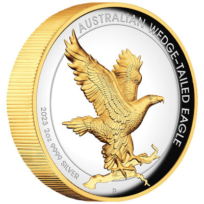 Australien - 2 AUD Wedge Tailed Eagle 2023 - 2 Oz Silber HR Gilded | ||