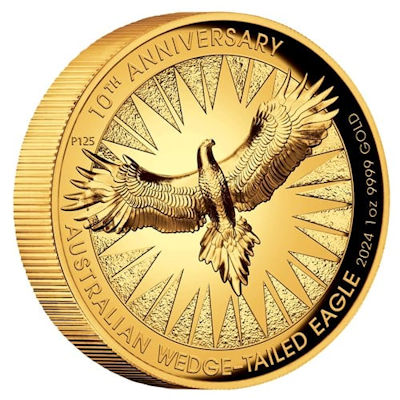 Australien - 100 AUD Wedge Tailed Eagle 2024 - 1 Oz Gold PP High Relief | ||