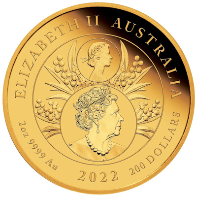 Technische Daten: Ausgabeland: Australien Prägeanstalt: The PerthMint Australia Ausgabejahr: 2022 Nennwert: 200 AUD Material: Gold Gewicht: 62,20600g Durchmesser: 40,90 mm Dicke: 3,80 mm Auflage: 200 Stück Prägequalität: Polierte Platte Verpackung: Gekapselt im Original-Etui mit Umverpackung und nummeriertem Echtheitszertifikat |