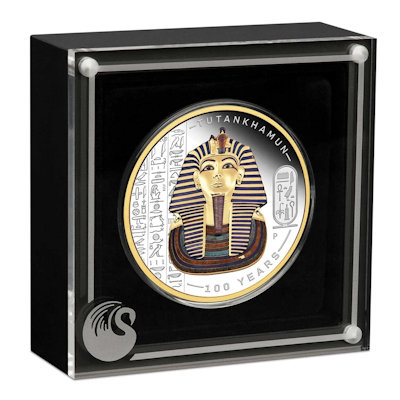 Anlässlich des 100. Jahrestages der außergewöhnlichen Entdeckung des Grabes von Tutanchamun zeigt diese hervorragende 2-Unzen-Silbermünze in Polierter Platte ein bemerkenswertes Bild des bekanntesten Schatzes aus dem wahrscheinlich spektakulärsten archäologischen Fund aller Zeiten.