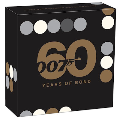 Der wohl weltweit berühmteste Geheimagent, James Bond 007, feiert sein 60. Jubiläum und die The PerthMint Australia würdigt ihm eine eigene Jubiläumsausgabe. Höchste Prägequalität Polierte Platte und coloriert zeigt die in Barrenform geprägte Münze das bekannte 007 Logo. Nur die geringe Stückzahl von 300 Stück dieser Ausgabe wird verausgabt und jeder James Bond Fan und Münzsammler dürfte sich in ein paar Jahren ärgern, die Ausgabe verpasst zu haben!