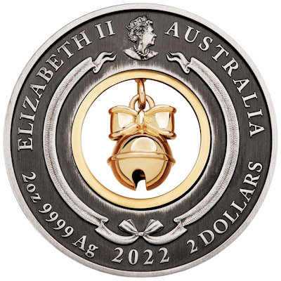 <<< Australien - 2 AUD Weihnachten Jingle Bell 2022 - 2 Oz Silber AntikFinish | |